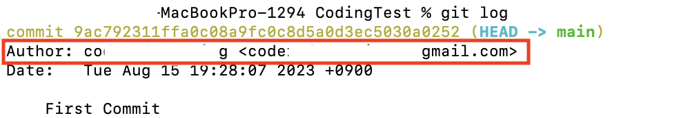 git config --local user.email E-MAIL@gmail.com -- 지금 리포지토리만 적용
