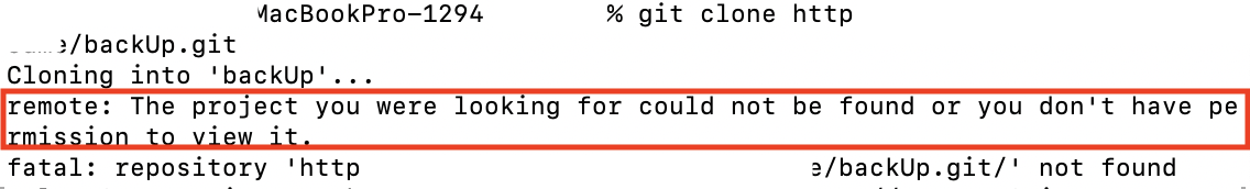 remote: The project you were looking for could not be found or you don't have permission to view it.